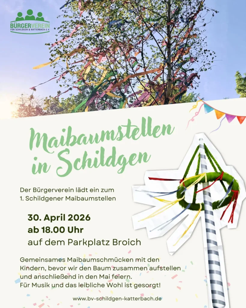 Der Bürgerverein für Schildgen und Katterbach e.V. lädt ein zum 1. Schildgener Maibaumstellen.